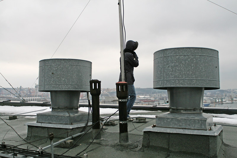 12 grudnia 2010, w dośc niesprzyjających warunkach pogodowych (ok 0°, deszcz, silny wiatr, śnieg zalegający na dachu) kilku członków klubu SP2ZIE poszło wymienniac anteny. Zdemontowaliśmy zestaw anten cross-yagi na 2m i 70cm, zestaw przełączników polaryzacji (Wi-Mo) oraz rotor azymutalno-elewacyjny. W miejsce tego zamontowaliśmy antenę do odbioru satelitów (m. in. NOAA) oraz popularną "radmorowską pałę".