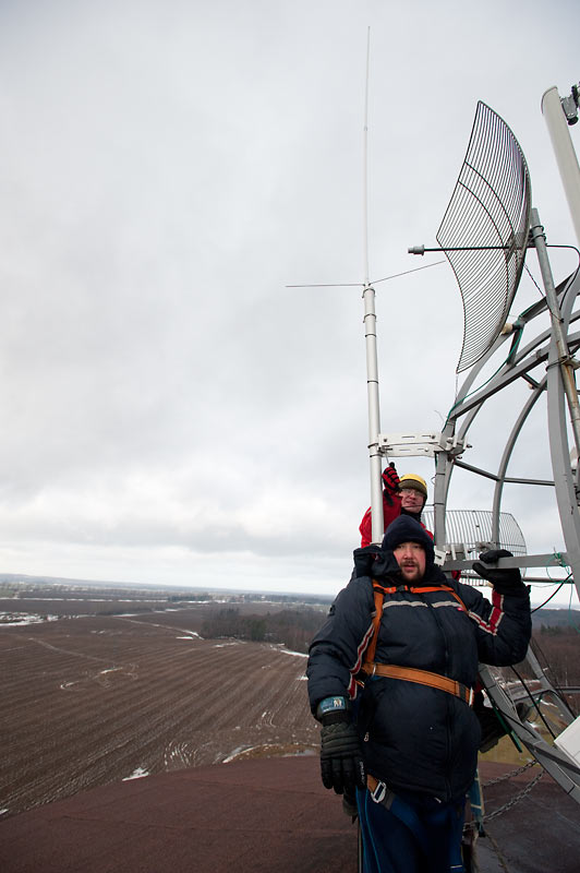 Zdjęcia radioamatorskie - Montaż przemiennika SR2GN na wieży w Gniewinie