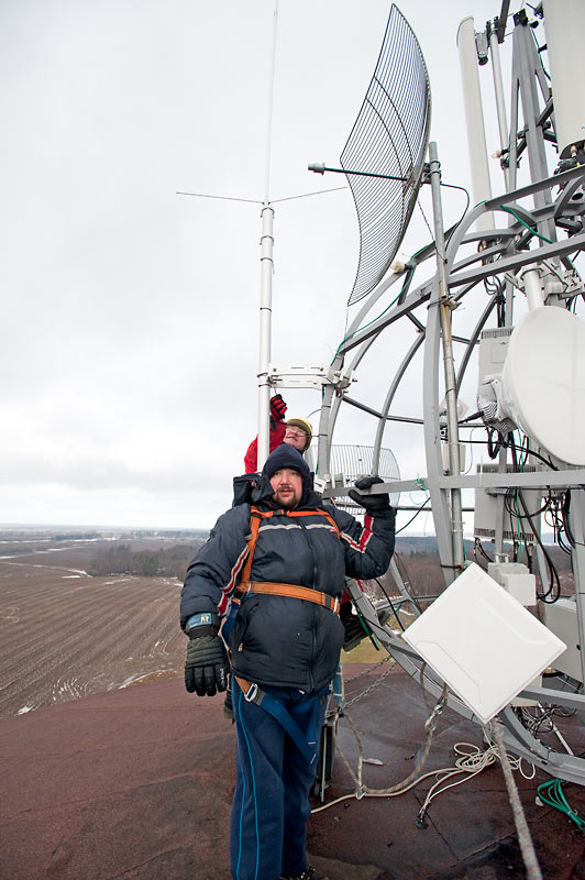 Montaż przemiennika SR2GN na wieży w Gniewinie